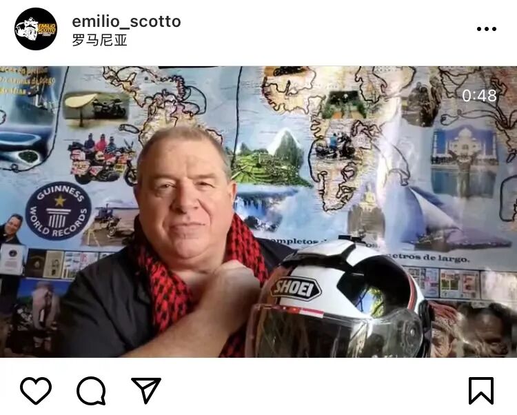 现在的Emilio已经67岁了,即使青春不再,他也没有丢失对摩托车旅行的热情。他将自己环球旅行的所见所闻写成了书——《De la Tierra a la Luna en motocicleta》(骑着摩托从地球到月球)