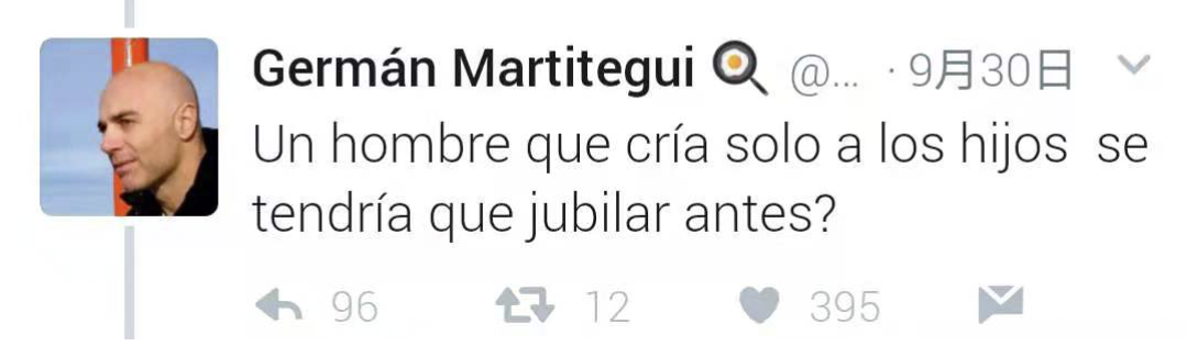 看到了Freijó的“教学”和一大堆网友的评论,单身老父亲Germán Martitegui又提出了新的问题:“那么独自抚养孩子的父亲也应该能早点退休了?”