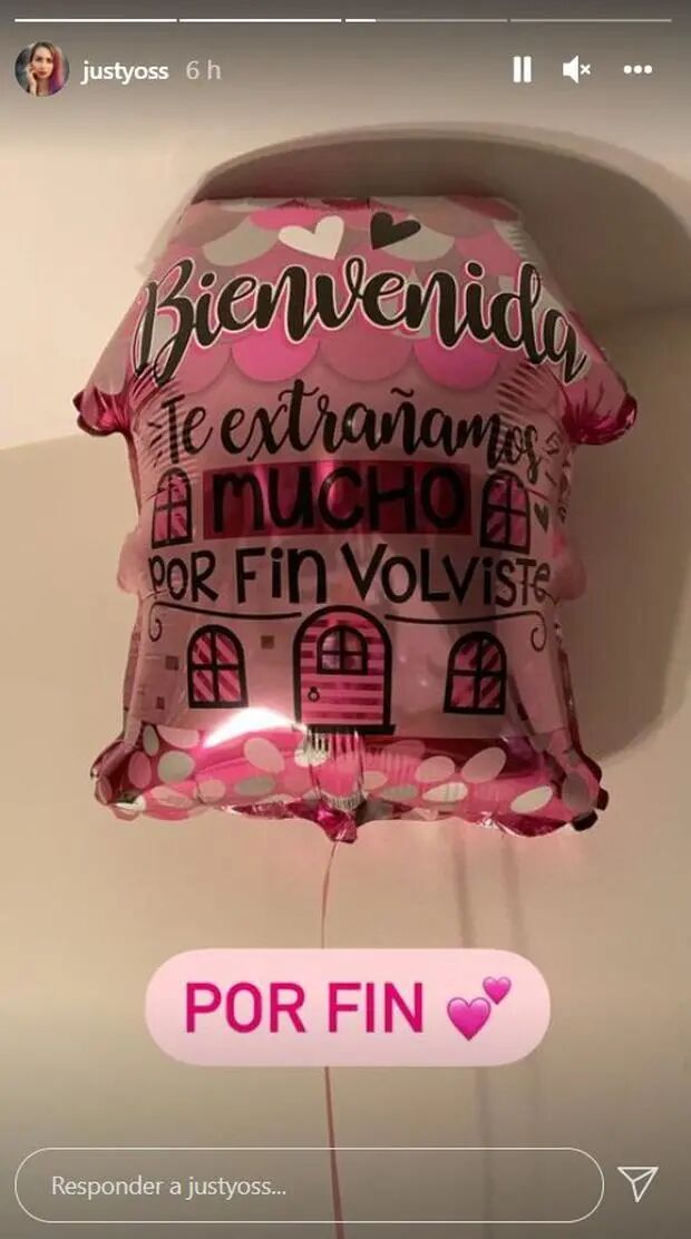 粉红色的气球上爱意满满地写着:“欢迎回来。我们都很想你,你终于回来了。”
