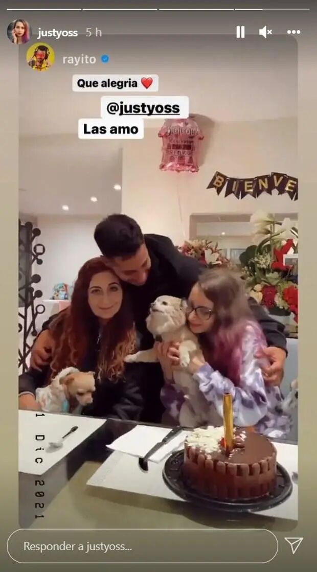 在她的Ins story中可以看到,在鲜花、气球和蛋糕的包围下,包括她母亲、兄弟和狗狗在内的一家人温馨地相聚在镜头前。