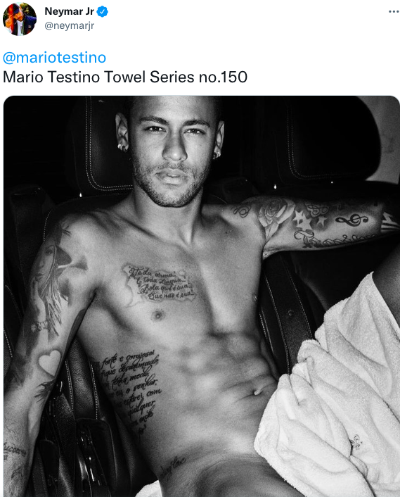 之后,由于十多名模特没有一人能拿出证据,圈中人脉也还在,于是仅过了一个月,Mario Testino就凭借给巴西球星内马尔Neymar的性感肖像照又“杀”回来了,Neymar亲自下场发推特,还引来了时尚圈大咖们的一众点赞。