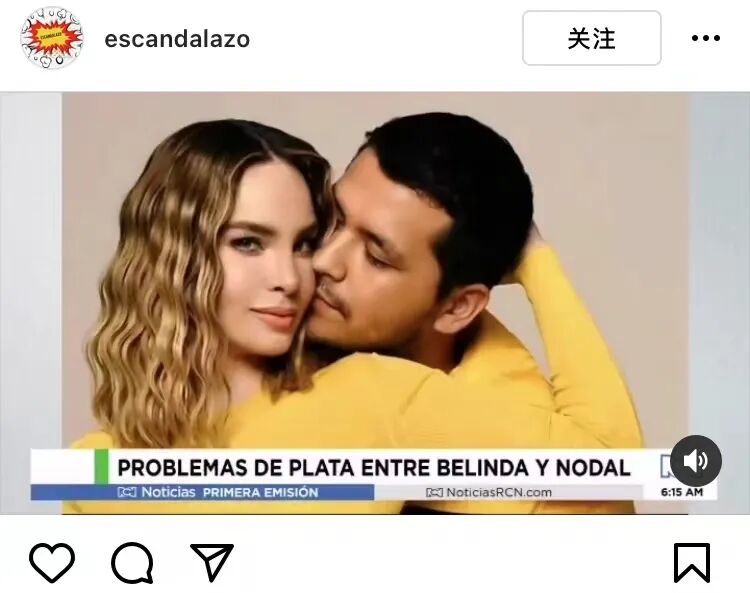 根据《De Primera Mano》节目的主持人称,这位墨西哥男歌手的母亲Cristy Nodal曾找了一位审计员来弄清楚她儿子的花销情况,而这引发了Belinda和Nodal之间的一系列问题。