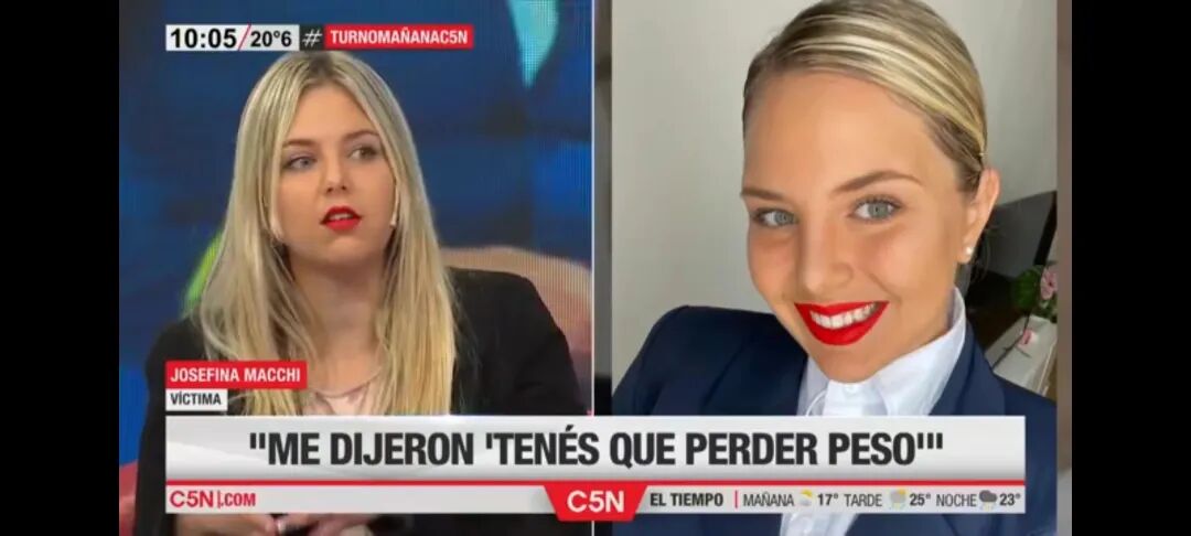 https://www.elespanol.com/social/20220427/josefina-azafata-rechazaron-gorda-historia-indigna-mundo/667933551_0.htmlhttps://www.infobae.com/economia/2022/04/26/necesitas-bajar-de-peso-repudiable-y-discriminatorio-argumento-de-una-aerolinea-a-una-joven-azafata-que-busca-trabajo/https://www.yasss.es/actualidad/viral/auxiliar-vuelo-rechazada-puesto-trabajo-fisico-peso-be5ma_18_3320371403.html