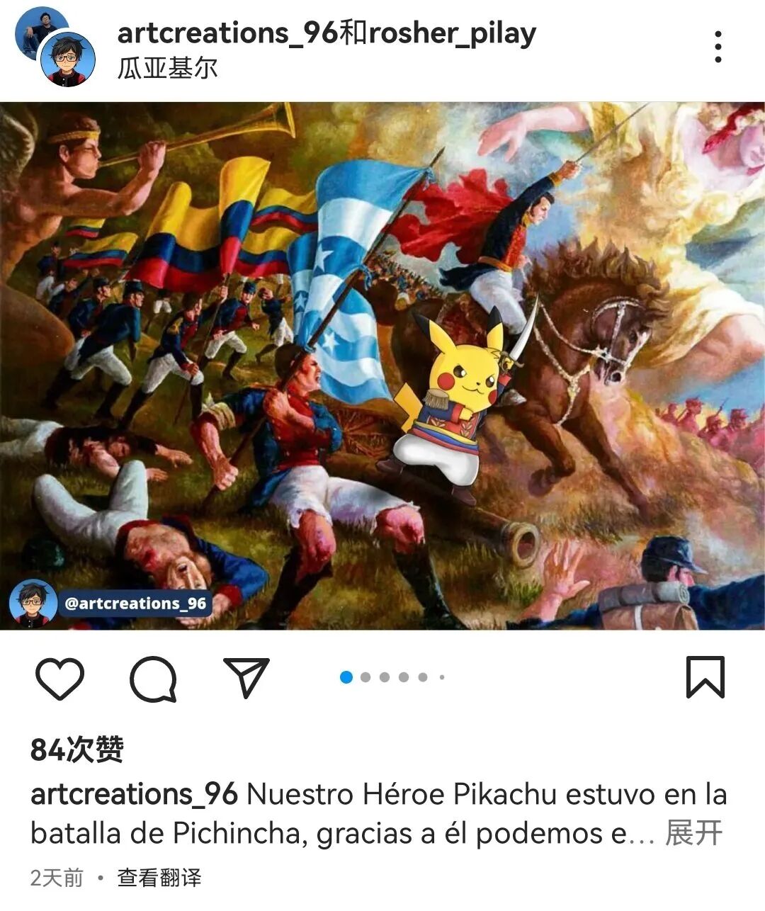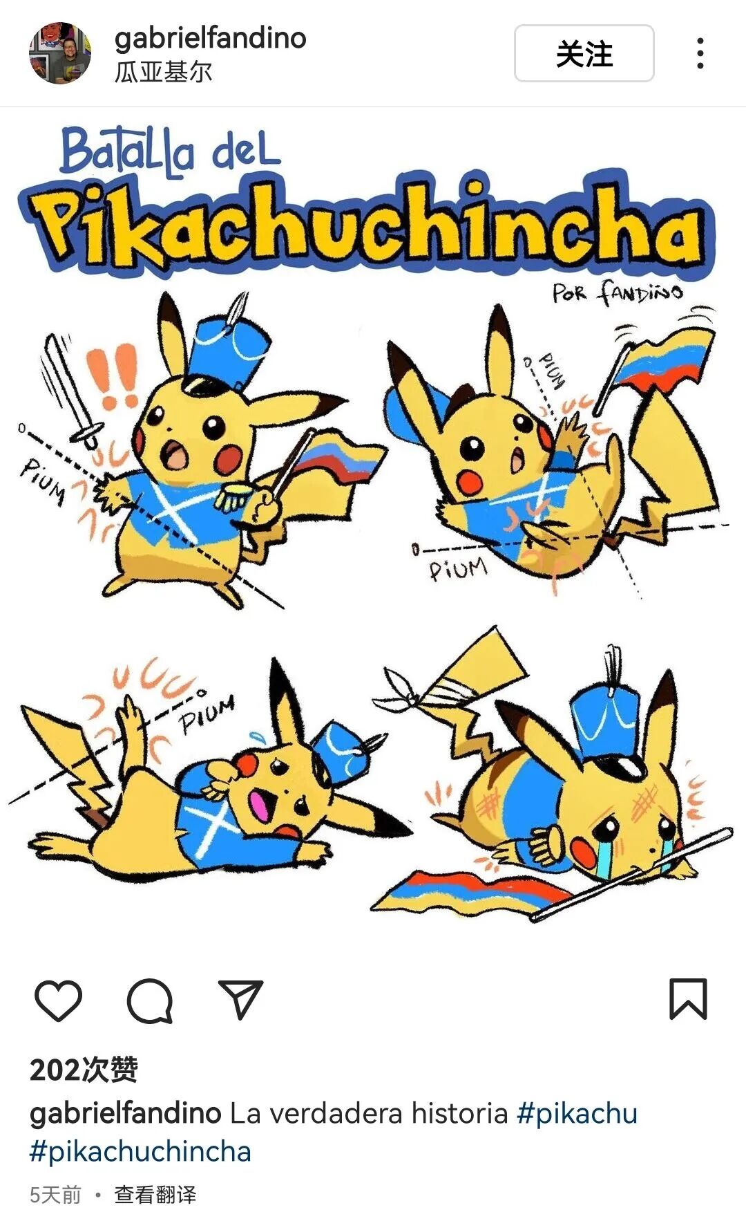 “我们的英雄皮卡丘参加了皮钦查战役,感谢他……”