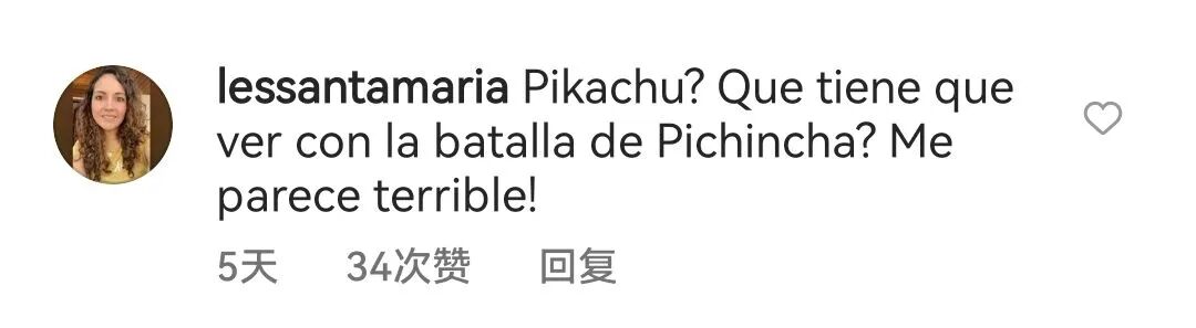 正因如此,很多人认为这幅有皮卡丘(Pikachu)出现的壁画疑似在影射皮钦查(Pichincha)战役是一场玩笑,并且对于这一严肃的纪念日来说是非常不合适的。