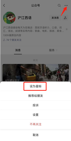 点击上方蓝字“沪江西语”>右上角菜单栏…>设为星标★