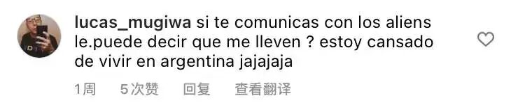 当然,大部分网友并不相信她的那套理论:“如果你能和外星人沟通,能不能让它们把我带走?我已经厌烦待在阿根廷的生活了,哈哈哈哈”