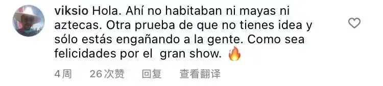 还有人指出她视频中的一些原则性错误:“(指美洲原住民的特奥蒂瓦坎古城)这里既不是玛雅人的也不是阿兹特克人的居住地。这就是你根本啥都不懂而是在欺骗大家的另一个证据。无论如何祝你出演了这场大秀”