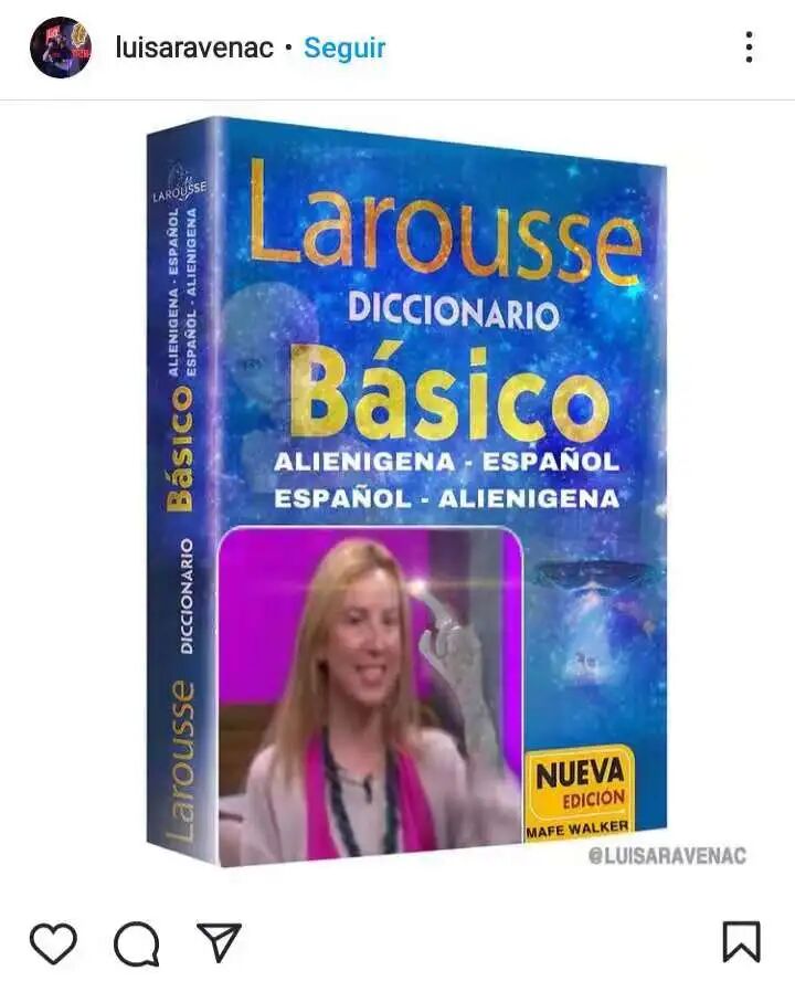 课程都安排上了,学习材料可不能少啊。老牌词典出版社Larousse拉丁美洲分社接着宣布,他们已和Mafe Walker合作准备推出最新版的外星语词典(当然也是假消息),并发文表示:“期待很快就会与克苏鲁和双生火焰的外星神相见。Aniahe hanmt nekeika”。(“Espera muy pronto una antología con los dioses alienígenas de Cthulhu y la Llama gemela. Aniahe hanmt nekeika”.)