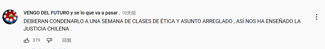 有网友阴阳怪气:“他们应该判处他参加一周的道德课,然后事件就解决了。反正智利司法是这样教导我们的。”