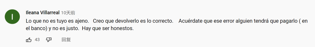 “不是你的东西就应该属于别人。我认为退还是正确的做法。请记住,有人不得不为这个错误(比如银行的人)而付出代价,这是不公平的。你必须诚实。”
