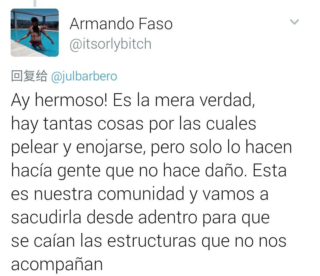 “哦,很美好啊! 这是真正的事实,有很多事情需要为之斗争和愤怒,但那些人只知道对那些没有任何伤害人的人下手。这是我们的群体,我们要从内部撼动它,让那些无法支持我们进步的结构崩塌掉。”
