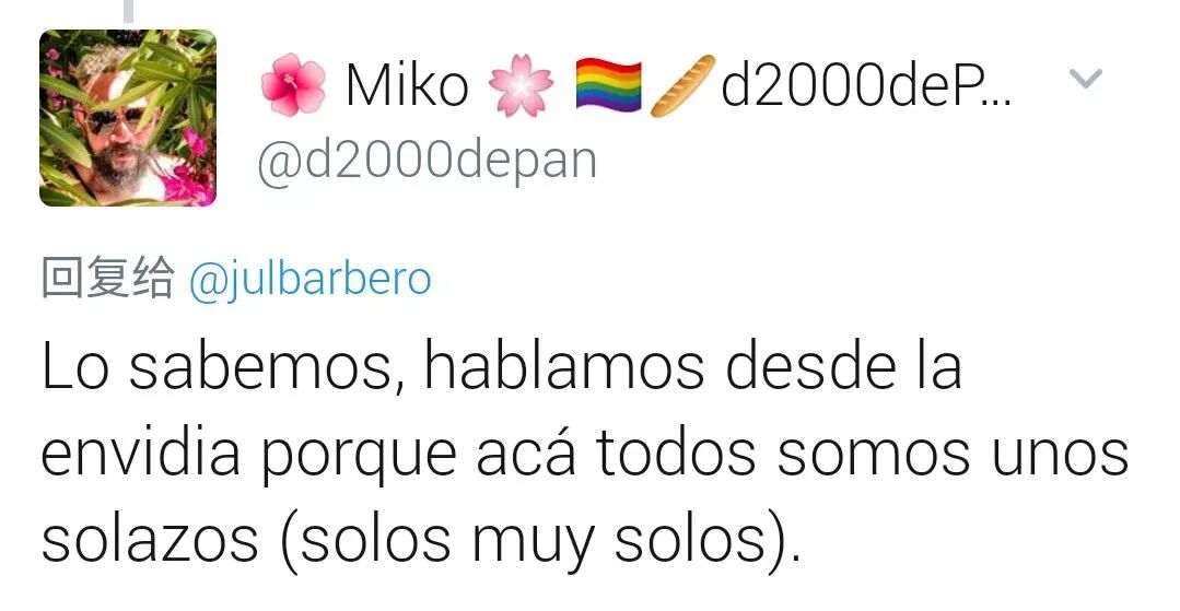 “其实我们自己都知道,我们的发言都是出于嫉妒,因为在这里我们都很孤独。”