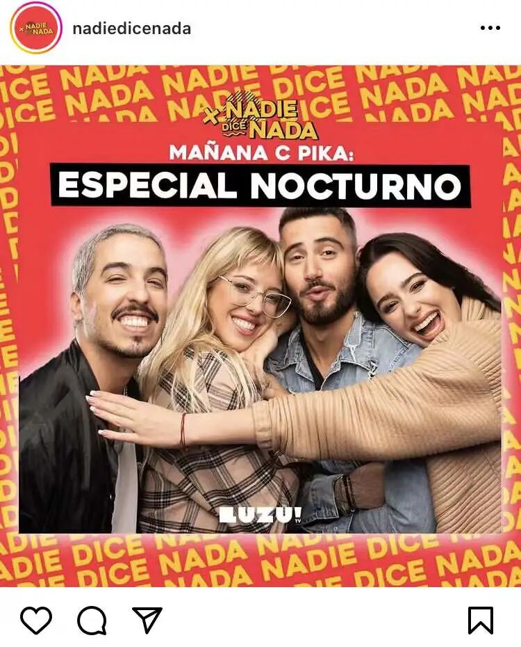 El programa sale al aire desde noviembre de 2020 y cada vez tiene más oyentes que cuentan sus historias y hay un divertido feedback entre la audiencia y los chicos que están en el programa. 该节目自2020年11月开始播出,有越来越多的听众讲述他们的故事,观众和节目中各位主持人之间的反响也很有趣。目前4位主持人是Nati Jota(电视主持人、记者)、Nico Ochiatto(演员、主持人)、Flor Jazmín Peña(舞蹈演员)和Nacho Elizalde(演员、制片人)。