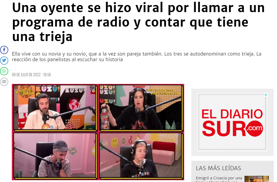 ref:https://www.minutouno.com/espectaculos/nati-jota/el-programa-se-viralizo-porque-hablaron-una-chica-que-dio-detalles-su-trieja-n5482473 https://noticiasporelmundo.com/america-latina/es-un-horror-matrimonio-tiene-una-trieja-con-una-chica-10-anos-menor-formaron-una-familia-ensamblada-y-generaron-polemica-en-las-redes/声明:双语文章中,中文翻译仅代表译者个人观点,仅供参考。如有不妥之处,欢迎指正。未经允许,请勿转载。