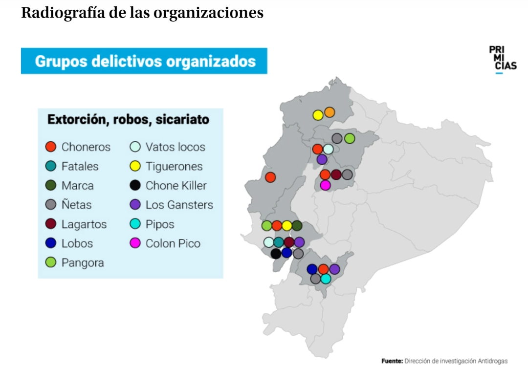 厄瓜多尔各帮派势力地图(图源:primicias.ec)