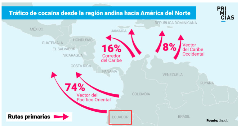 如果说监狱中的帮派战争其实是监狱外社会上帮派势力斗争的一个缩影,那么社会上的帮派们到底在争夺些什么呢?答案显而易见——当然是销售的渠道和地盘。正如前文所说,各个帮派与贩毒集团私下都有合作,厄瓜多尔正日益成为“通往美国和欧洲的可卡因高速公路”(autopista de la cocaína hacia Estados Unidos y Europa)。去年,厄瓜多尔国家警察缉获了128.4吨毒品(128,4 toneladas de droga),这是过去十年来最大的量。"Las bandas necesitan mantener el control, especialmente en las cárceles de Guayaquil, pues ahí está la principal ruta y el punto de partida: el Golfo de Guayaquil y el Puerto de Guayaquil", explica Pazmiño.“这些帮派需要保持对区域的控制权,尤其是在瓜亚基尔监狱,因为那里是销售流通的主要路线和起点所在地:瓜亚基尔湾和瓜亚基尔港,”Pazmiño上校解释说。