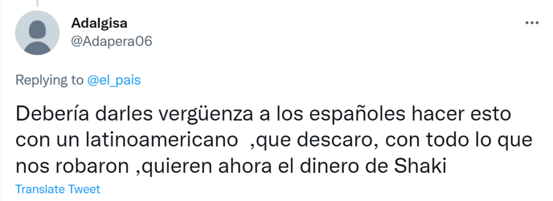 有人甚至上升到了历史层面:“西班牙人应该为对一个拉美人这样做而感到羞耻,太不要脸了,他们从我们这里偷走了所有东西,他们现在还想要Shaki的钱”