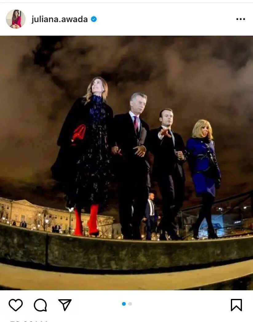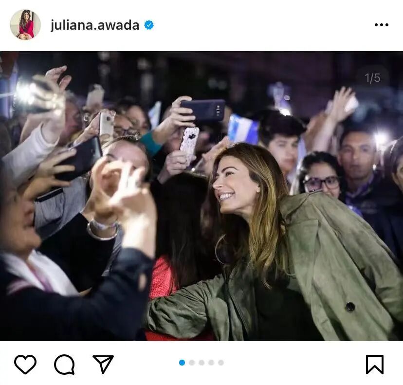 La figura de Juliana fue fundamental para la victoria de su marido. La pareja presidencial cuida al máximo su faceta de pareja enamorada y moderna, y Awada posa siempre con sonrisa permanente y accesible ante la prensa. Es habitual que sus apariciones se analicen en las cabeceras de moda más importantes del mundo.Juliana的形象对她丈夫的选举胜利可谓是至关重要。这对总统夫妇十分注重维护他们作为恩爱的现代夫妻的形象,而阿瓦达也总是面带微笑表现得平易近人。就连世界上最重头的时尚杂志都会定期分析他们的形象。