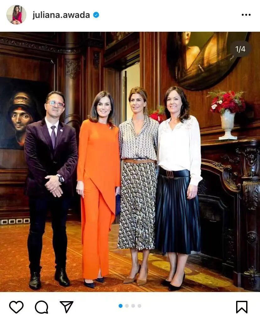 同样作为国家元首夫人,同样是时尚自信的女强人形象,许多媒体会将她和西班牙王后莱蒂西亚联系在一起。于是从2017年开始,每当Juliana陪同丈夫出访西班牙时,她和Letizia王后的照片都会占据西班牙大小媒体的头版头条。