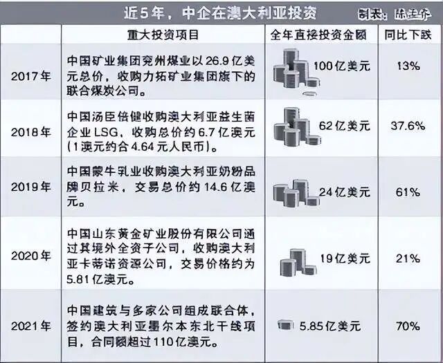 据毕马威会计师事务所和悉尼大学最新发布的研究报告,2020年中企在澳投资跌至25亿澳元,2021年中国在澳大利亚的投资比例竟然再减少近70%,这在某种程度上表示,中国投资者已经迅速放弃了澳大利亚。
