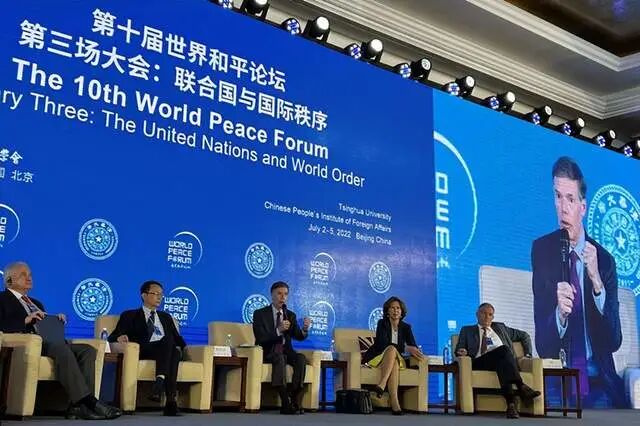 近日,联合国世界和平论坛在北京举行,美、俄、英、法驻华大使及中国相关人员出席会议。