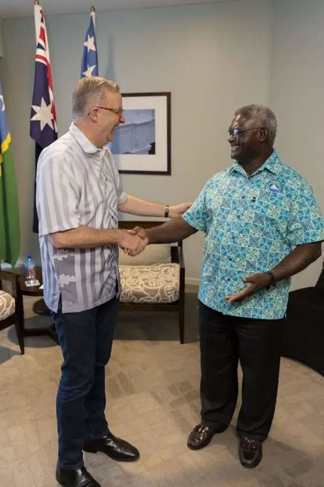 澳大利亚总理阿尔巴内塞借着本次论坛与所罗门群岛总理索加瓦雷展开首次会晤。