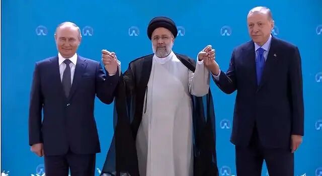 俄罗斯总统普京与伊朗总统莱希(中)、土耳其总统埃尔多安(右)