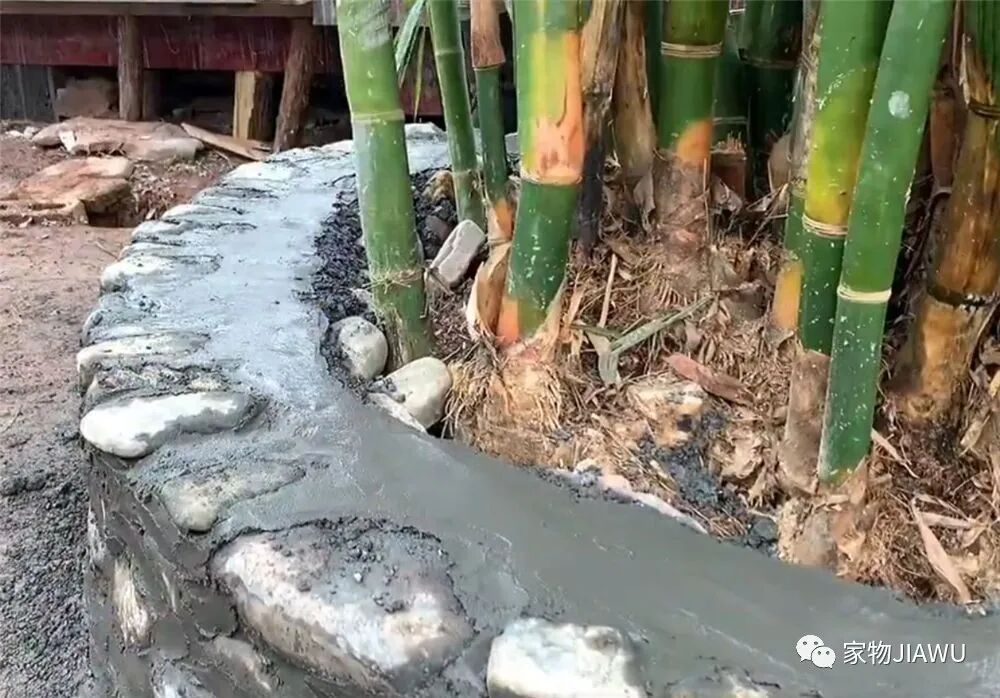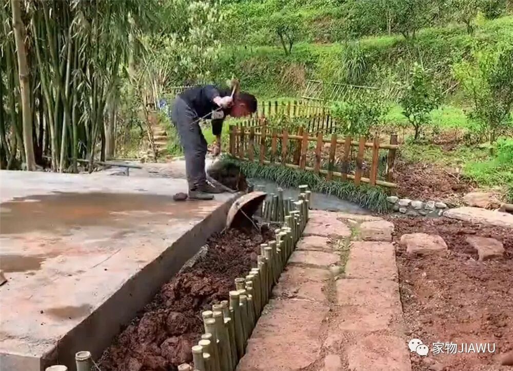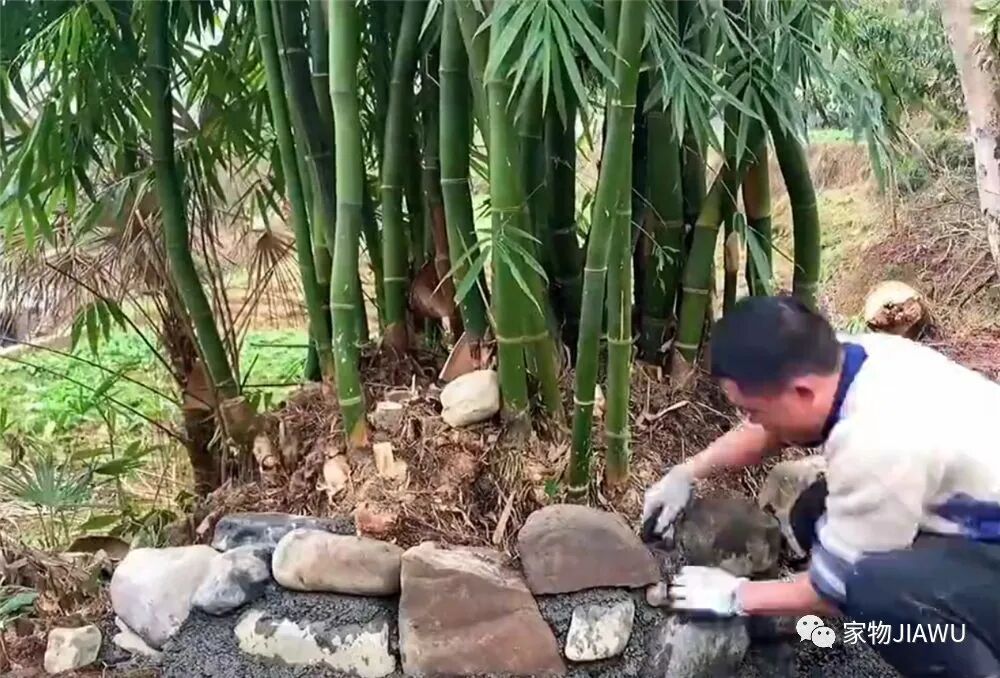 这位小伙还从河边捡来了石头,自己动手砌成“花池”,将屋子前的小竹林变成独特的风景。
