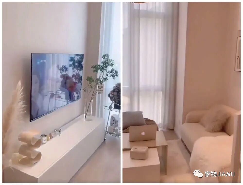 沙发、茶几、电视柜的经典三件套搭配,却因为姑娘自己选的家具而变得质感满满,再加上周边一些装饰,显得少女风满满。
