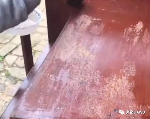 不过这一过程比较繁琐,因为老旧的漆面较厚,而且上面附着时间过长,所以这位姑娘即便是涂抹了除漆剂后,也还是拿铲子一点儿点儿将漆面慢慢铲除。