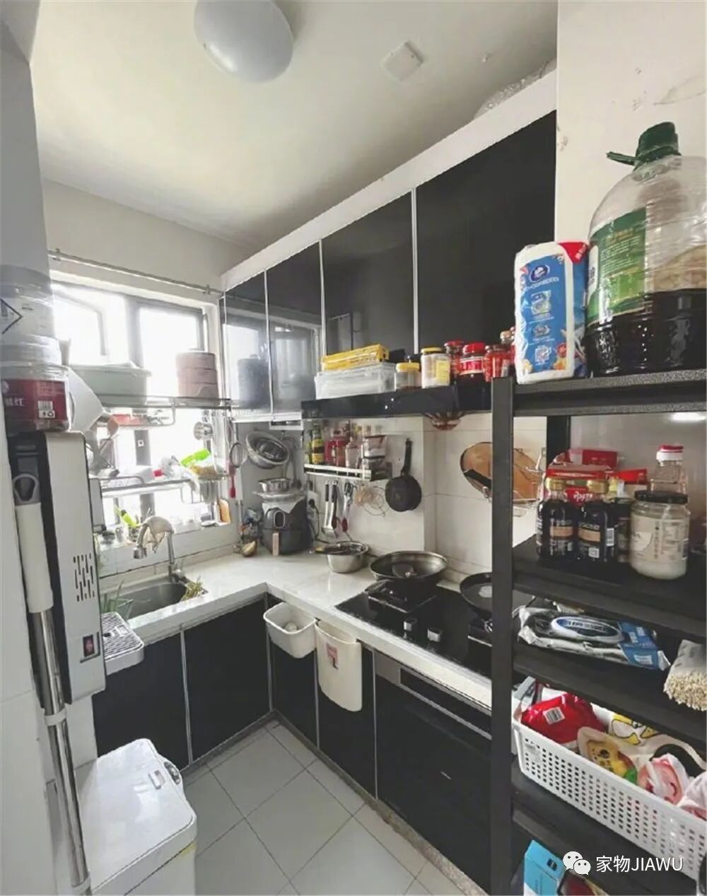 先来说厨房,怎么说呢,这间厨房一看就是经常下厨烹饪的人会使用的,里面各种食材调味品非常多,乍一看都堆在一起,但实际上却又都在最好拿取和使用的位置上。