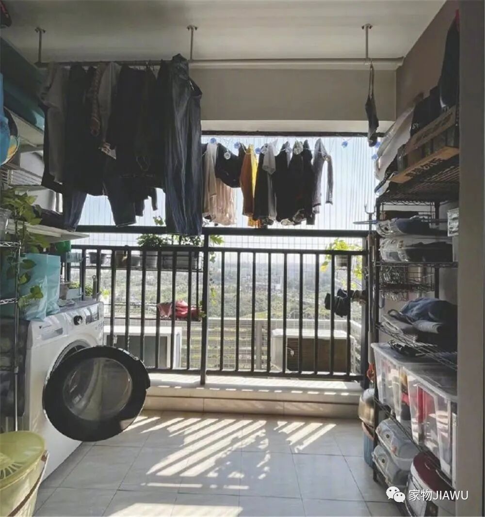如此紧凑的空间,阳台自然不可能做成休闲阳台,所以思索再三,夫妻俩决定完全放弃休闲阳台的功能,将这里做成一间生活阳台。