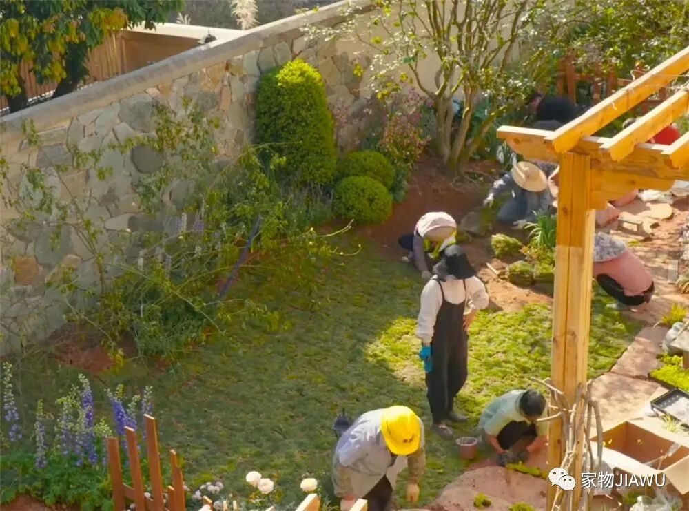而后,在墙角和一些之前设计好的位置,也栽种了小株的灌木等植被,增强庭院的绿化效果。