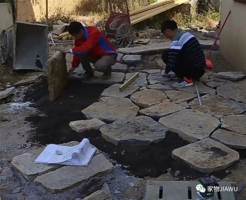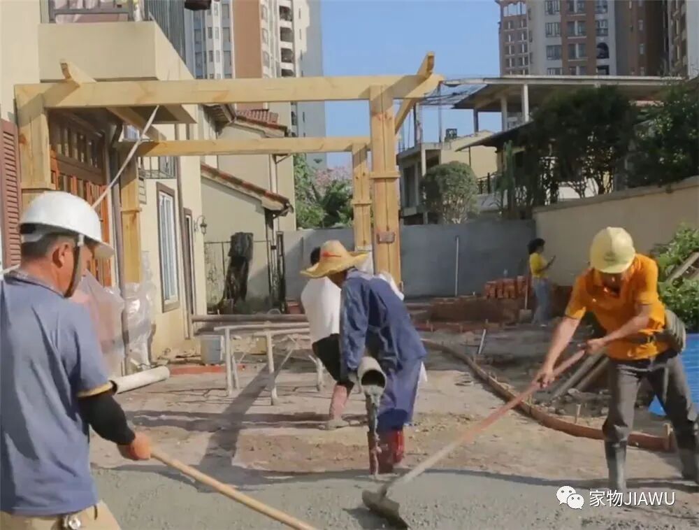 姑娘在自行设计后,对小院有了一个大致的规划,她先是叫工人用水泥把大部分的区域进行固化,而后再在上面开始“造景”。
