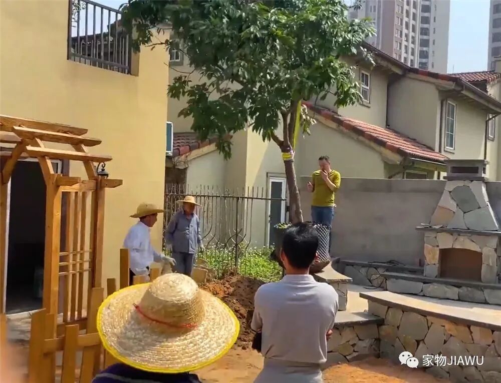 做完这些后,改造基本上来到了一些最后的点缀和收尾工作,她先是买来了几株不大也不小的树,栽种在庭院各处,为光秃秃的庭院增添生机与活力。