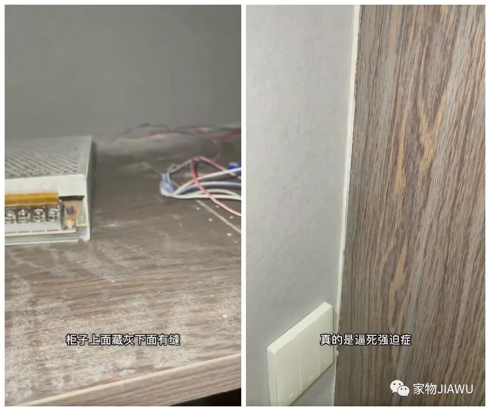 再有就是家里柜子的问题,做柜子的时候,上面没做成通顶的,下面也没有封好留有缝隙,结果就是频繁的积灰纳垢问题,确实令人头疼,这点大家也要注意下。