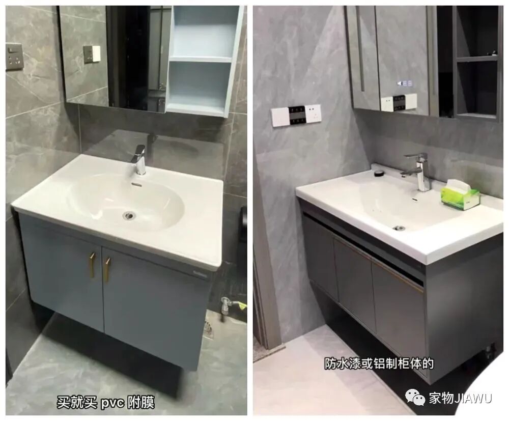 所以还是建议大家一次到位,买浴室柜的话尽量买那种PVC附膜的,或者是那种铝制金属柜体+放水漆的,在浴室这种高潮湿的环境下,才会更加耐用一些。