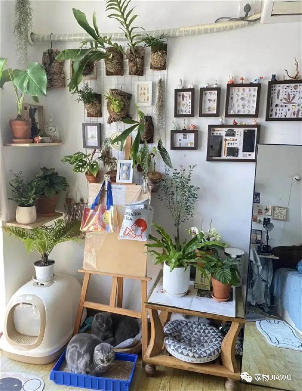 当看腻了家里的摆设装饰后,两人还用一些绿植、干花、标本等装饰,对枯燥的大白墙进行填充,你还真别说,家里摆上这些花朵装饰后,看起来真的漂亮很多。