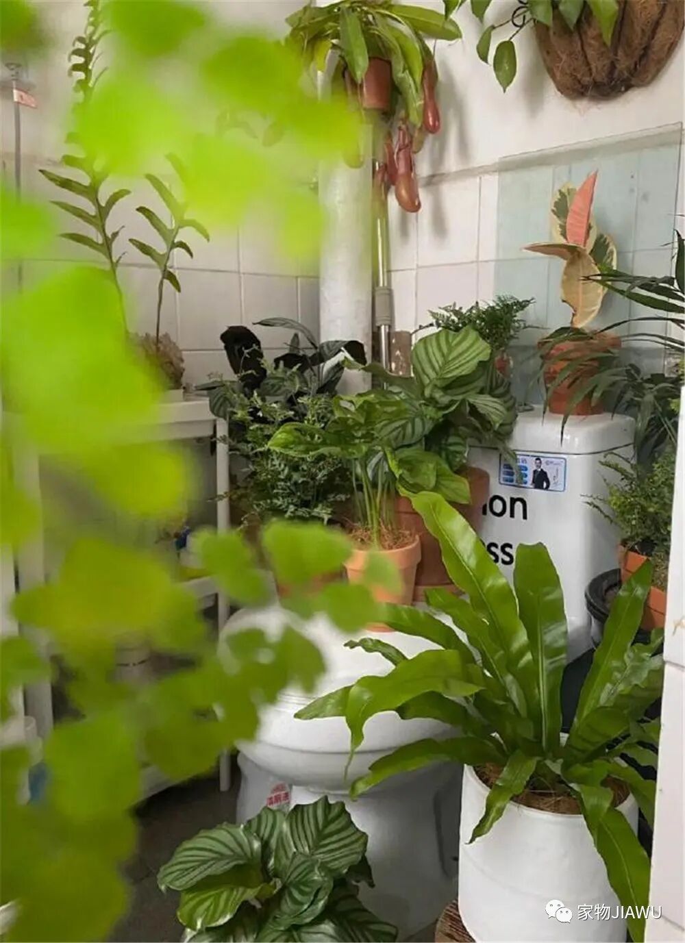 卫生间空间很小,而且老旧的墙砖不好装饰,两人就想了个办法,用茫茫多的绿植来进行遮挡和装饰,让卫生间瞬间变得漂亮了起来!