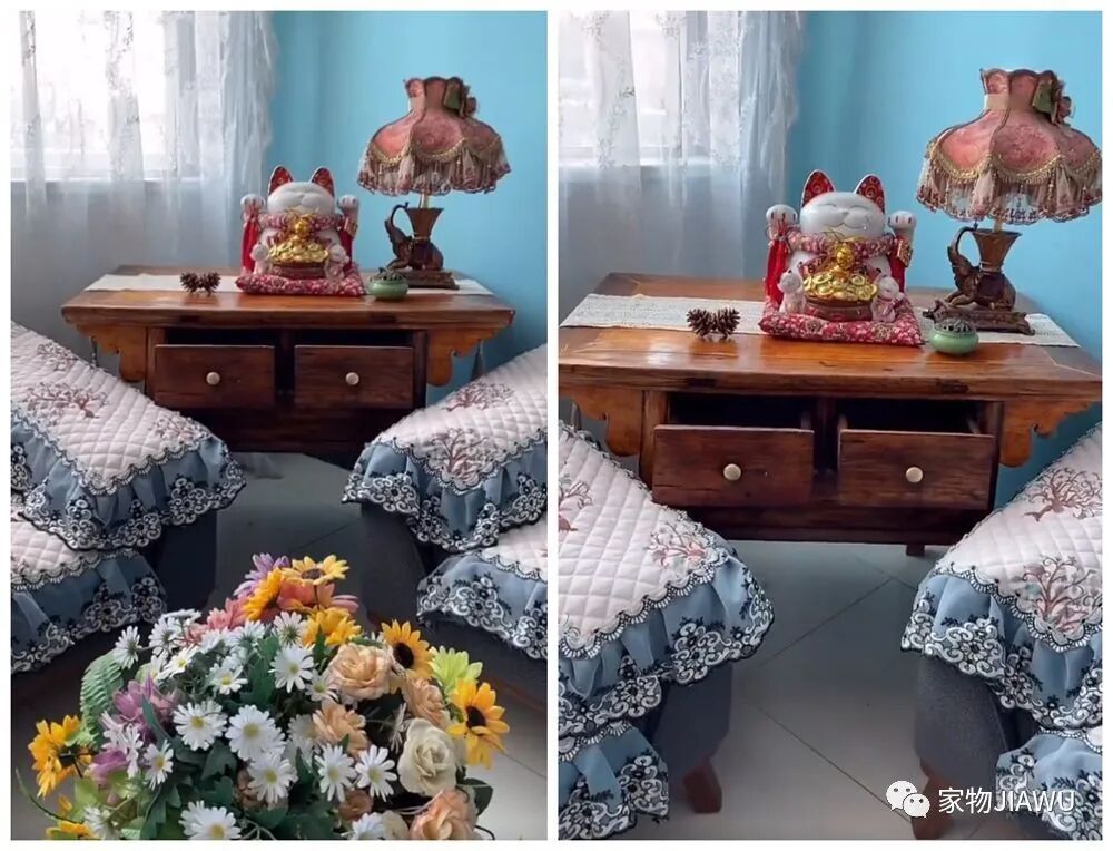 最后,一起来看看翻新后的效果吧——翻新后的桌子,早已不见当初那般破旧到要散架的影子,放在沙发边上当个边柜,既有复古感又非常实用,也是绝了!