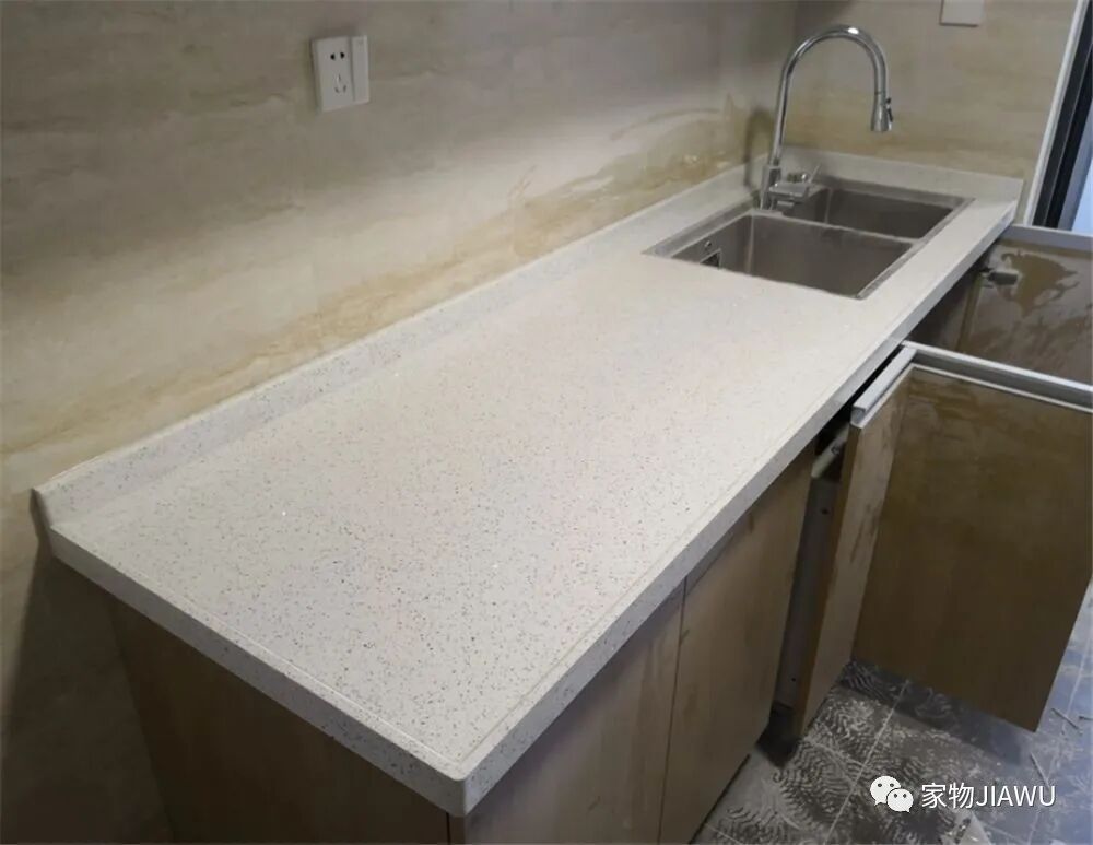 台面材质的选择,大家心里要有杆秤,一般来说石英石、防火板、大理石、花岗岩、不锈钢都是比较常见的,我个人推荐石英石和人造石的,性价比高又耐用。