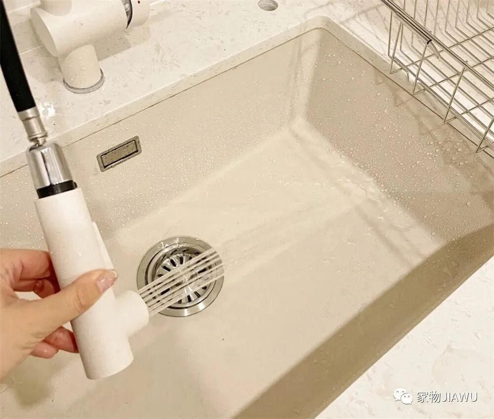 厨房水槽的水龙头,建议大家选抽拉式的,清洁水槽和周围的台面,真的都非常非常方便。
