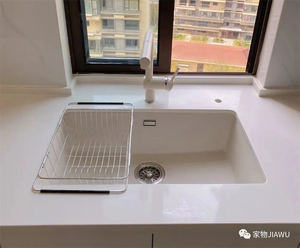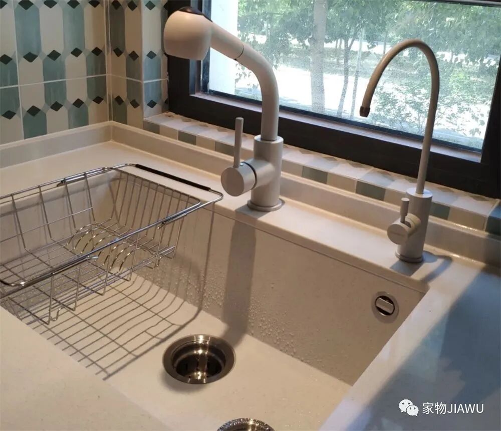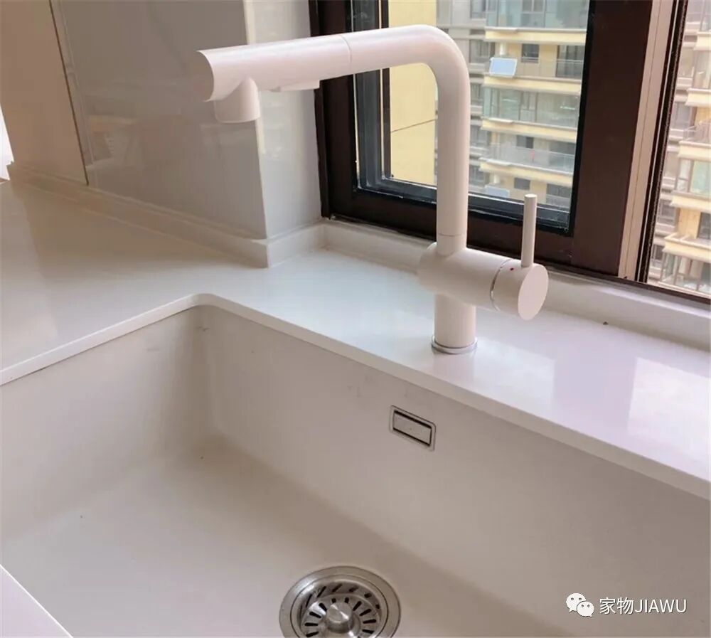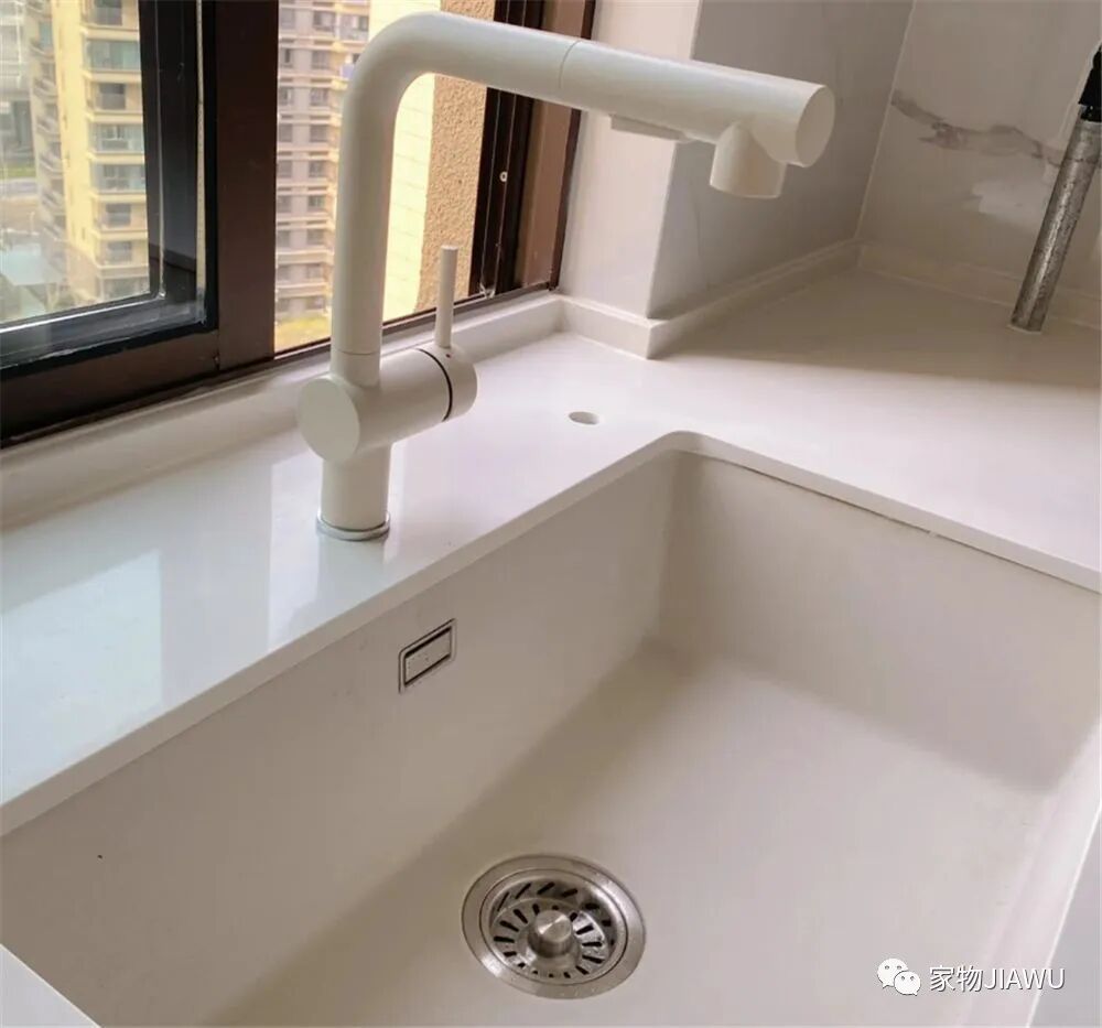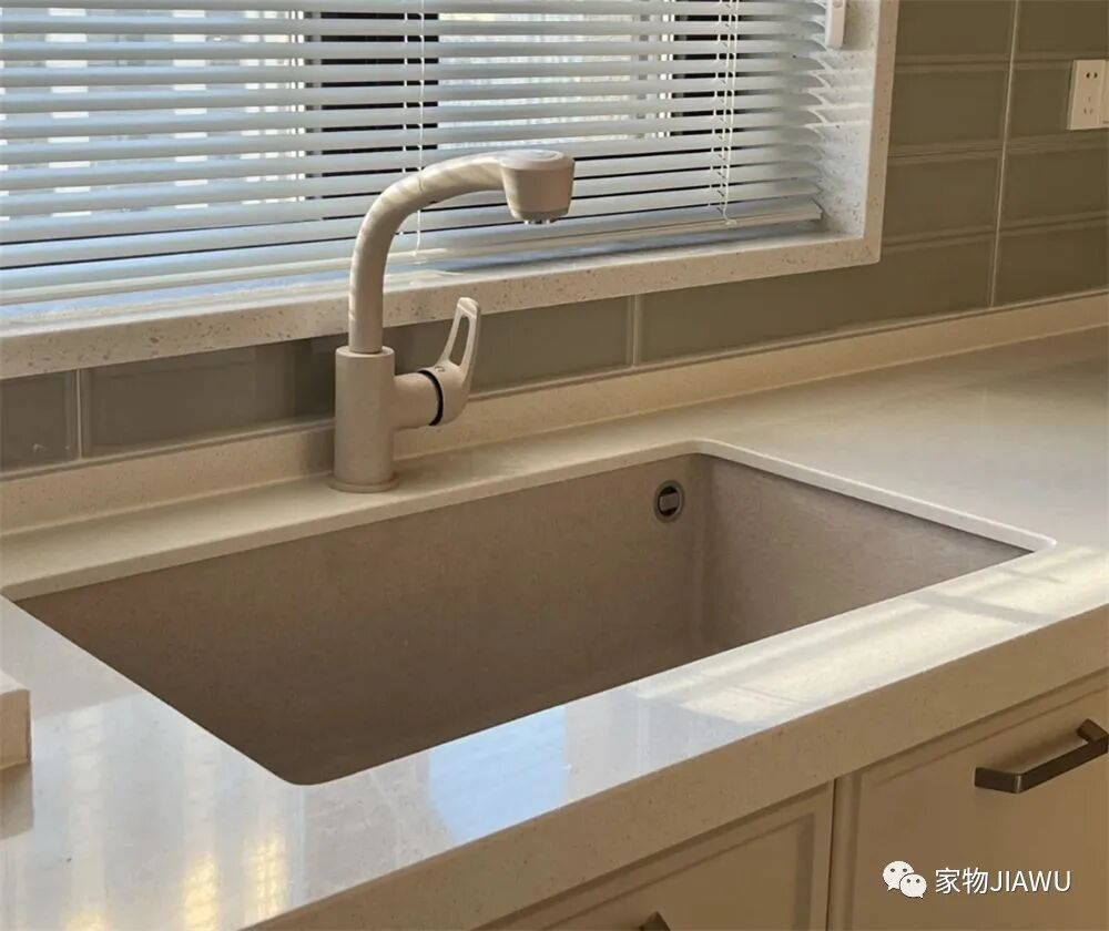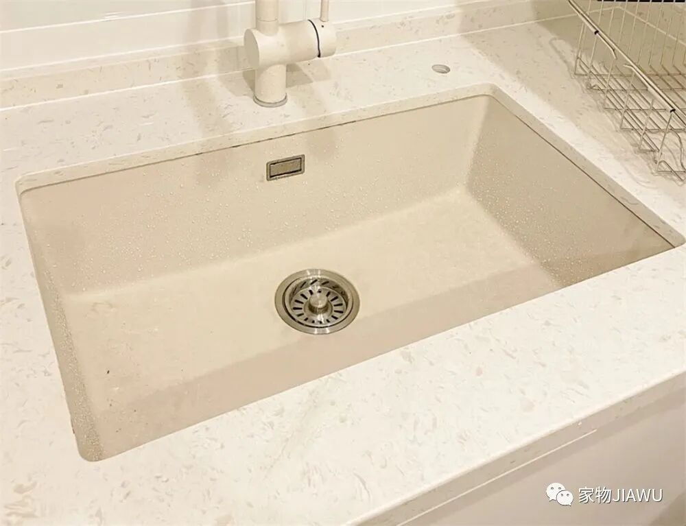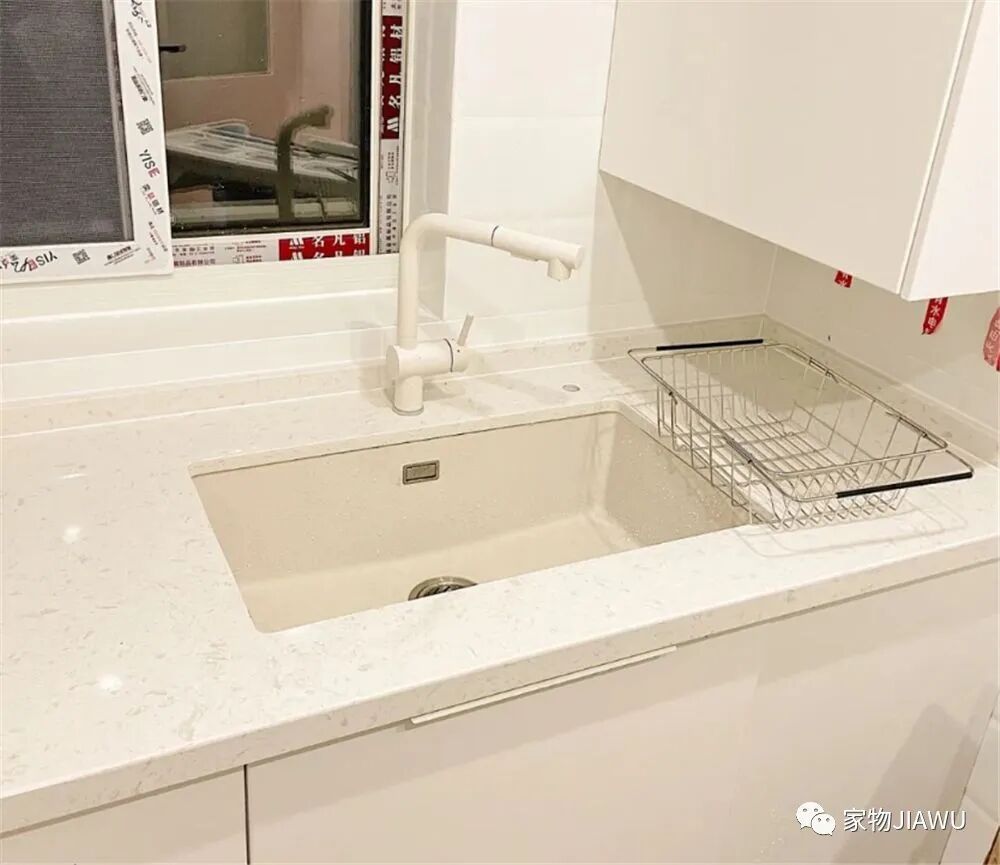 反观我朋友家的石英石水槽,抗刮擦能力不错,而且表面光滑,清理起来也非常方便,外观也要显得有质感些,说到这里,我是真的后悔买不锈钢的了……