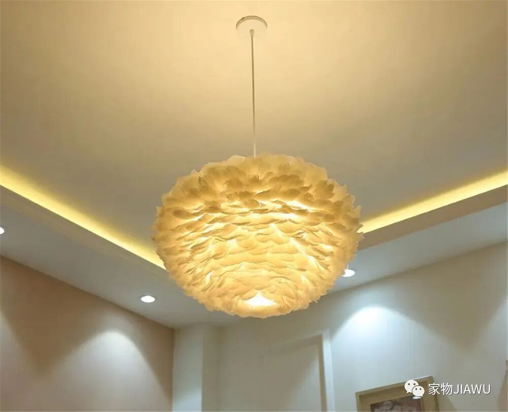 其实不仅羽毛吊灯,各种复杂的吊灯我都不推荐,基本上就是吃灰的典范,用久了清洁绝对是个大问题,劝大家简简单单装个吸顶灯,好看又不难打扫!