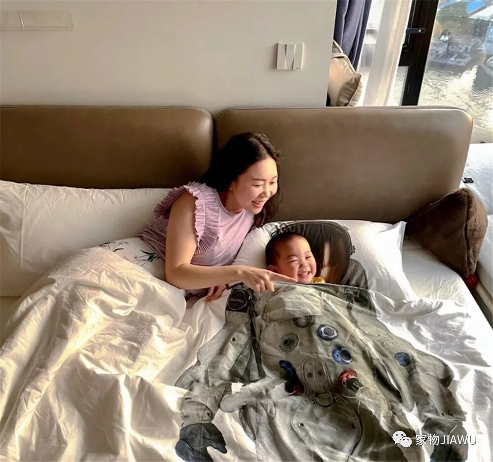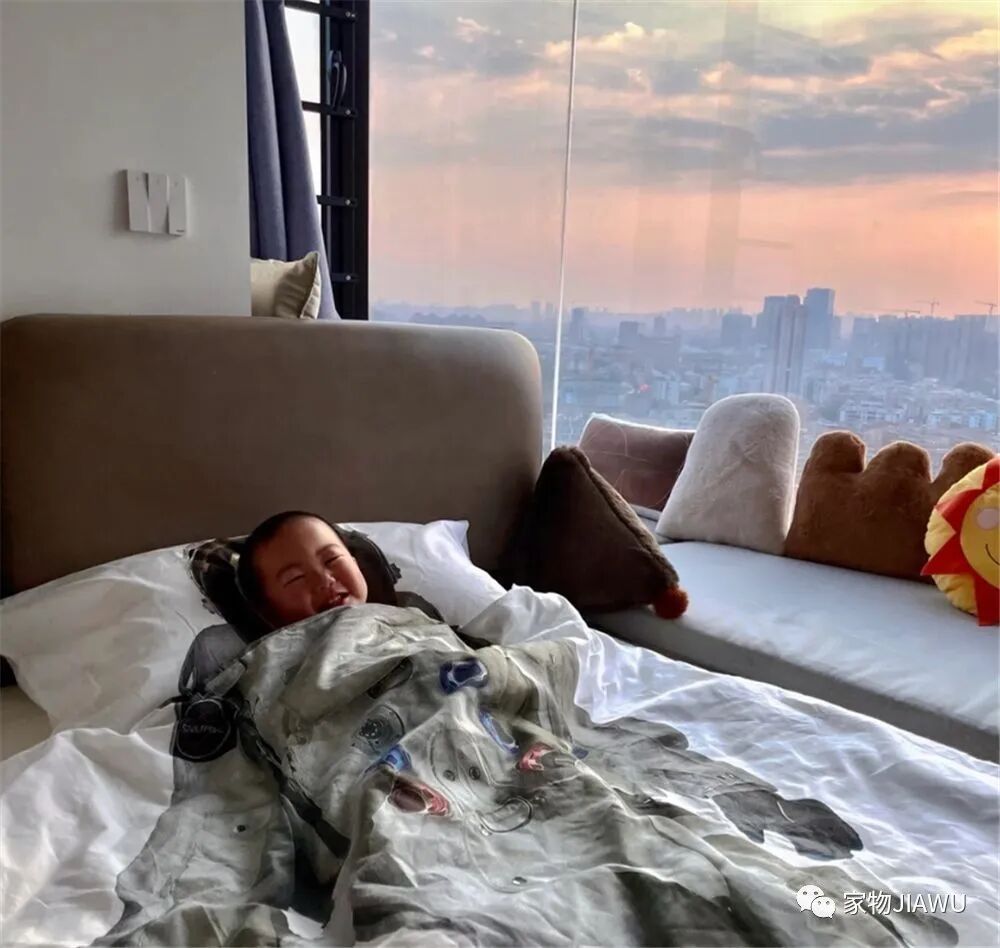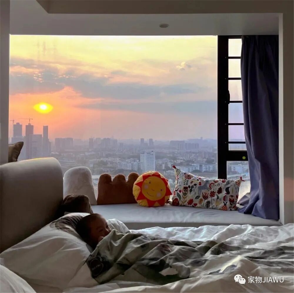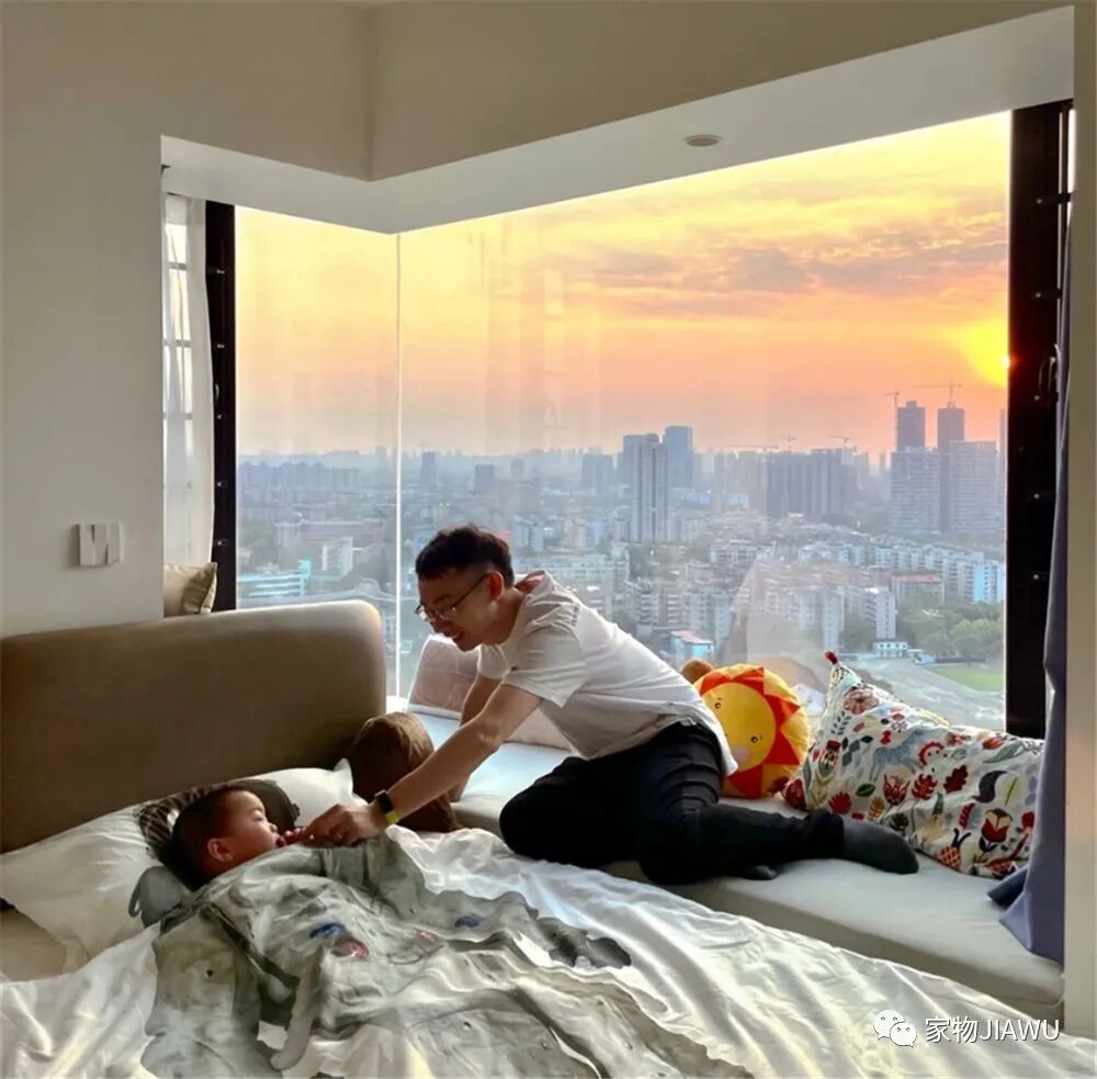 闲暇的时候,妈妈和爸爸都会在这里陪着儿子,聊聊天、讲讲故事,一起看看窗外漂亮的江景、日落的景色,生活悠闲惬意又美好。