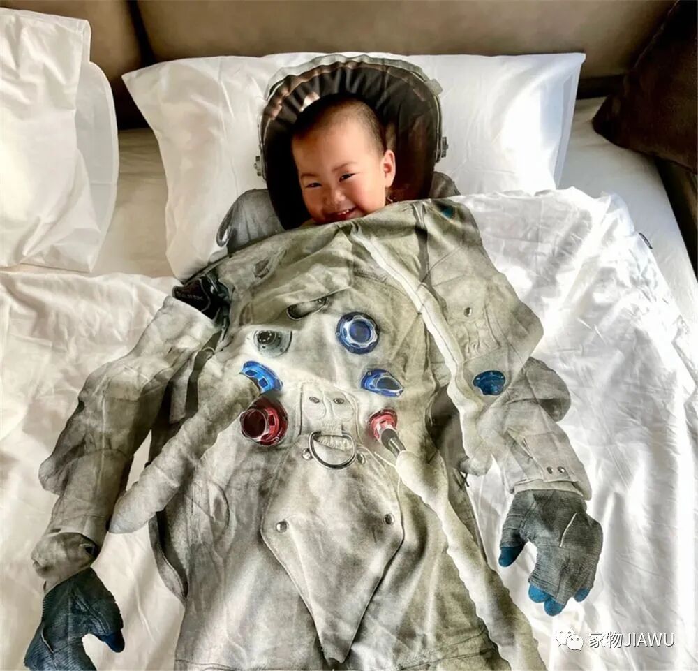 而且就像我上面说到的,儿子很喜欢这组宇航员造型的床褥四件套,看上去也真的是太有特点了!我小时候要能有这样一个小窝,怕是也舍不得出来。