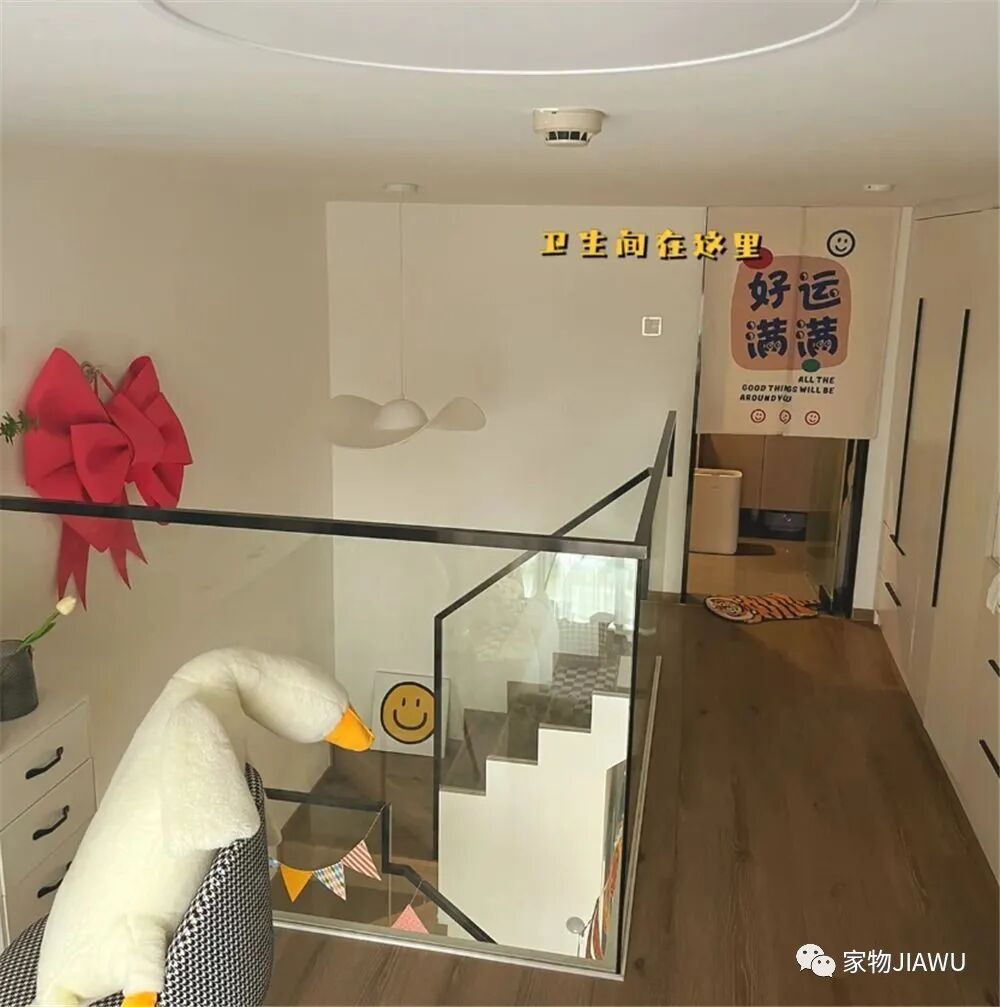 为了能给17㎡的小家营造出通透明亮的感觉,楼梯扶手都是采用的这种玻璃面设计,尽可能让光线照射到家中的每一处空间。