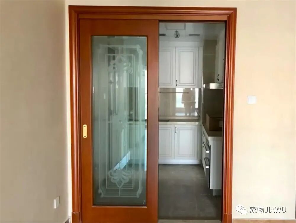 回到厨房区域,精装前后的厨房其实并未做太多改动,只是换掉了原本老旧的推拉门,内部的橱柜和电器基本上保留了原来的。
