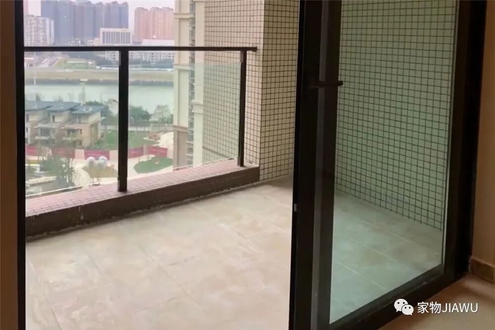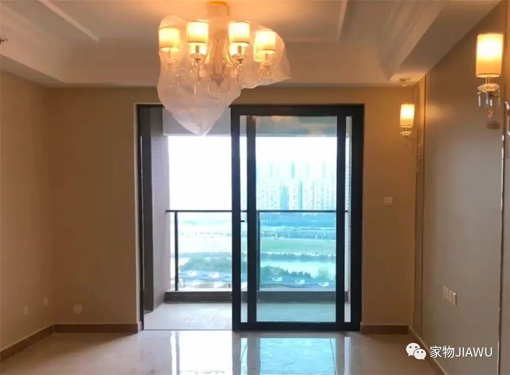 客厅到阳台的部分,原本做了黑色的推拉门,看上去显得有些压抑,而精装后,取消了推拉门设计,将阳台和客厅完全连接,并通过地台和客厅进行空间划分。